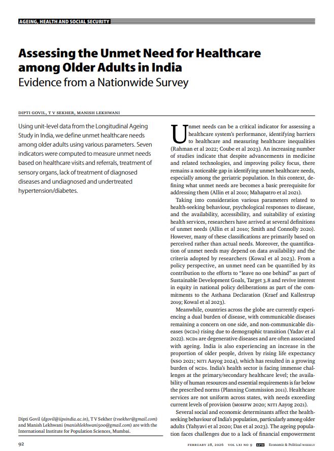 Assessing the Unmet Need for Healthcare among Older Adults in India : Evidence from a Nationwide Survey