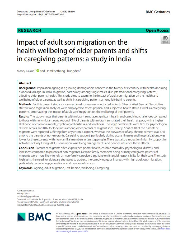 Impact of adult son migration on the health wellbeing of older parents and shifts in caregiving patterns: a study in India