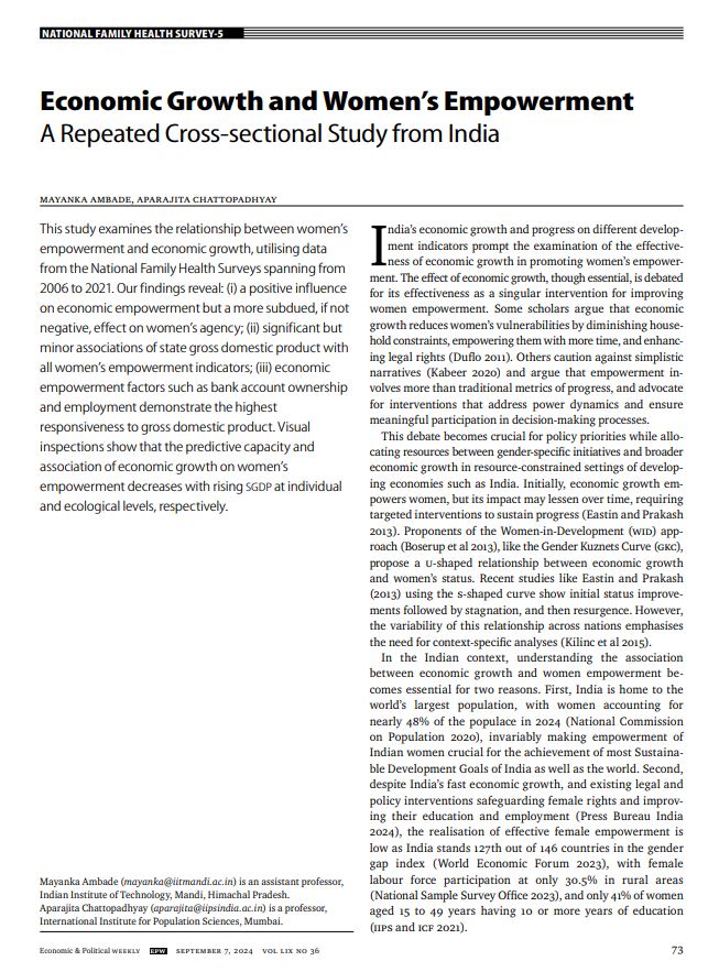 Economic Growth and Womens Empowerment A Repeated Cross-sectional Study from India